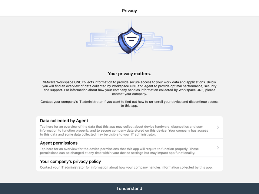 The data and privacy policies are displayed. Click I Understand to proceed.
